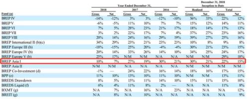 在投资回报率方面,根据黑石最新一期财报,BREP欧洲Ⅴ期基金毛内部收益率(GIRR)高达29%,净内部收益率(NIRR)达18%,BREP全球Ⅱ期基金毛内部收益率(GIRR)也能达到9%,净内部收益率(NIRR)达8%。
