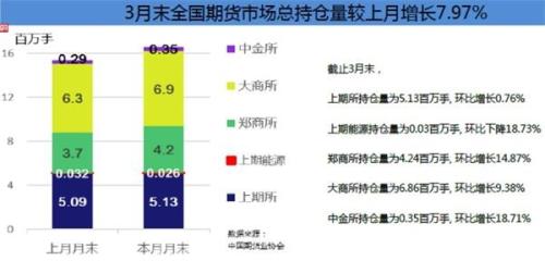 除成交量、成交额提高外,3月末全国期货市场总持仓量较上月增长7.97%,为连续第三个月增长,表明资金对期货市场关注度正在提升。
