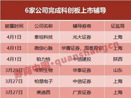 而在4月1日,上海证监局再次公布泰坦科技、微创心脉两家公司完成上市辅导的公告,辅导券商分别为光大证券、国泰君安(601211,诊股)与华菁证券。