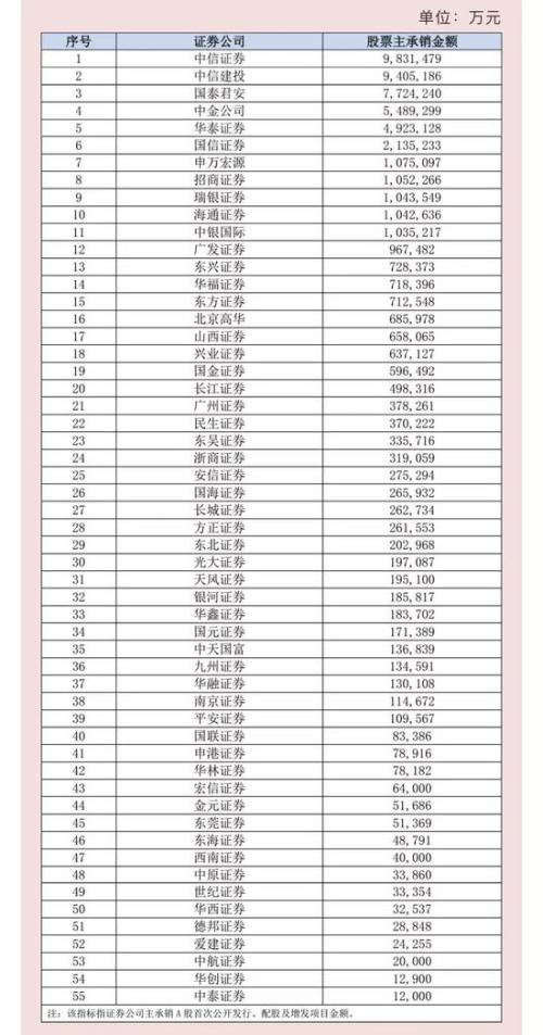 股票主承销金额排名前五:中信证券、中信建投、国泰君安、中金公司、华泰证券