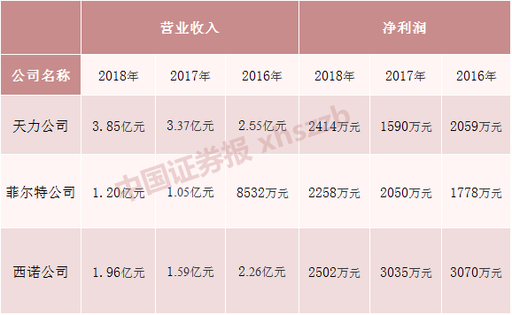 财报显示,2018年,西诺公司实现净利润2502万元,菲尔特公司实现净利润2258万元,天力公司实现净利润2414万元。