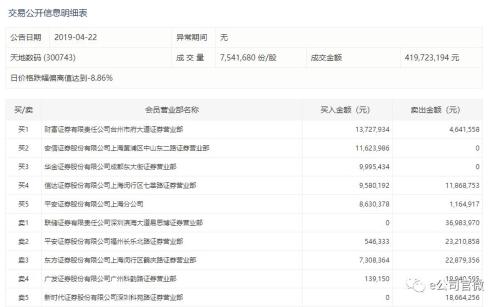 梳理上述两营业部买卖轨迹。4月22日,信达证券上海闵行区七莘路证券营业部买入958.02万,卖出1186.88万,东方证券上海闵行区鹤庆路证券营业部买入730.84万,卖出2287.94万;4月19日,上述两营业部分别卖出826.25万、 745.47万,分列卖四、卖五;4月18日,信达证券上海闵行区七莘路证券营业部买入1339.59万,卖出1417.58,列买五卖三席位,东方证券上海闵行区鹤庆路证券营业部买入2278.98万,2452.95,占据买一卖一席位;4月16日三日交易信息显示,两营业部分别买入3075.17万、2454.99万,占据买二买三席位。