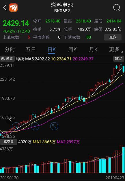 此前连续上涨成为市场焦点的燃料电池板块大跌4.42%。