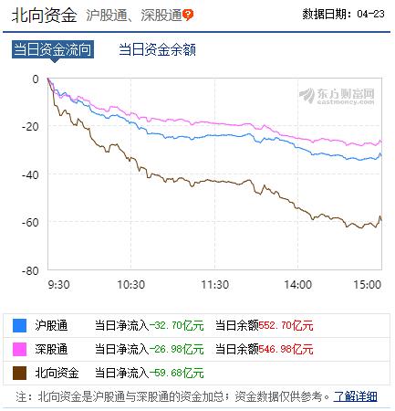 4月23日,北向资金净流出近60亿元。4月份以来,北向资金净流出额已超过百亿元。