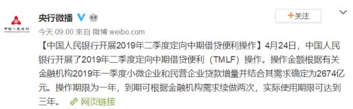 今日(4月24日),央行开展了今年第二次TMLF操作。