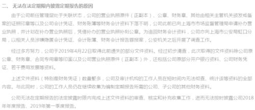 经过多方努力,公司于2019年4月22日追回此前遗失的部分文件资料……由于上述文件资料数量繁多,短时间内无法彻查、统计该等资料的全部内容……