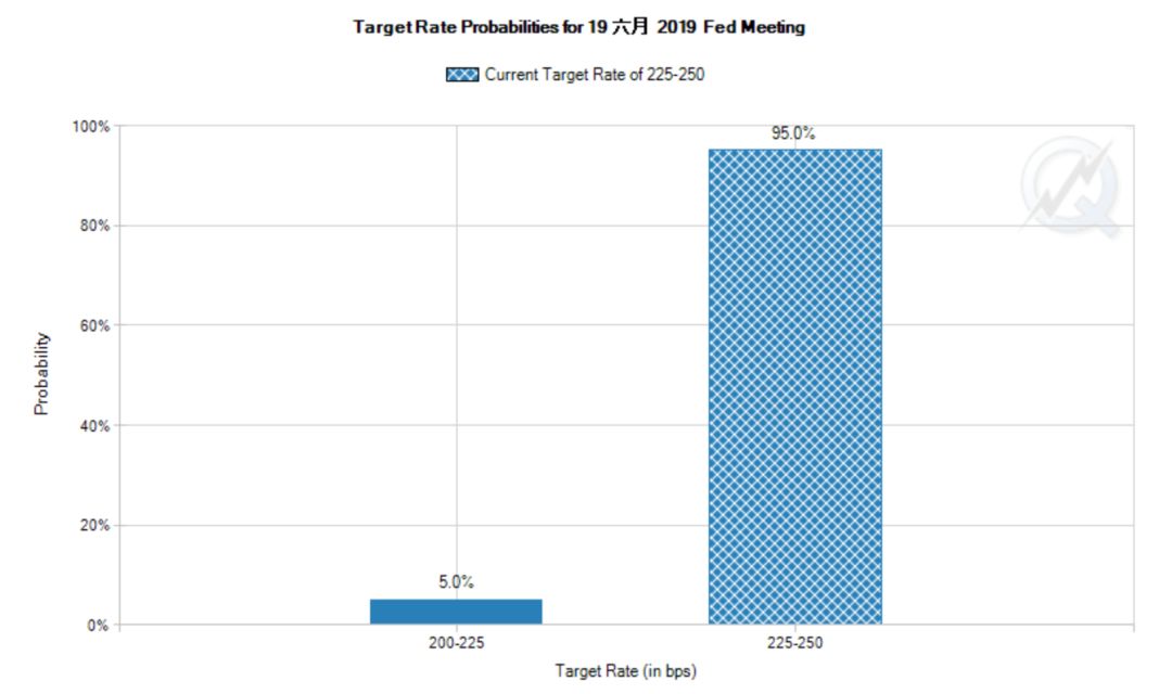 市场人士表示,此次非农就业数据向好,进一步降低了美联储降息的概率。作为预测美联储货币政策的指标之一,芝商所(CME)“美联储观察”(FedWatch)的最新数据显示,市场参与者预计美联储下次议息会议(今年6月)维持利率在2.25%-2.5%不变的概率为95.0%;降息25个基点的概率仅为5.0%,较此前出现下降。