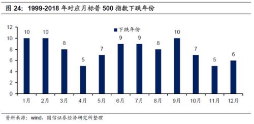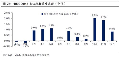 1999 -2018 年,美股标普500指数5月表现处在一年中的还不错水平,月度涨幅为1.1%,10月是表现最好的份,月度涨幅2.0 %,其次是11月,涨幅为 1.8% ,4月,涨幅为1.1 %。需要规避的是1-2月,跌幅 0.1%,0.2%。
