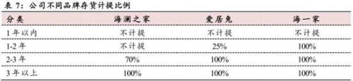 而巨额存货的减值风险正在不断加大。目前,海澜之家的存货计提屡遭质疑,这与存货计提较低有关。据财富证券研报,目前,公司旗下品牌1年内存货均不计提跌价准备,规模占比较大的男装主品牌海澜之家2年内不计提存货跌价准备。财富证券直言,海澜之家的存货跌价计提政策较为特殊。下图为财联社对财富证券的截图: