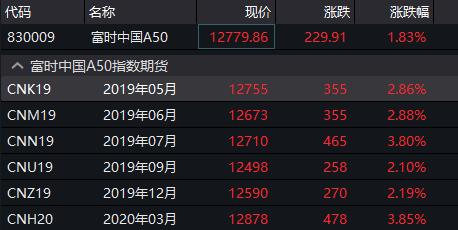 新加坡富时A50期货涨幅更大,截至11:38,富时A50期指主力5月合约上涨2.86%,报12755点。