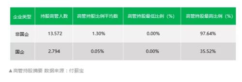 不过,从持股比例来看,国企高管持股人数为2794人,平均持股比例只有0.05%。而非国企高管持股人数为1.36万人,平均持股1.3%。