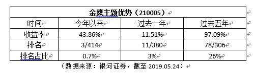 金鹰基金旗下多只基金提前布局5G、计算机、农业优质公司,今年以来业绩持续领先的金鹰主题优势基金(210005)是其中的典型代表,受益于5G及农业板块回暖,收益率或有望再度提升。具体来看, 银河证券数据显示,截至今年5月24日,金鹰主题优势基金今年以来收益率为43.86%,跻身同期同类可比414只基金前三甲(银河分类:混合基金-偏股型基金-偏股型基金(股票上下限60%-95%)(A类))。