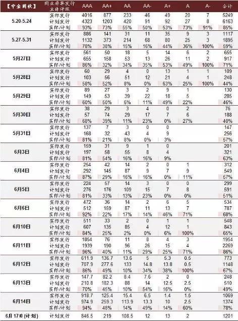 从同业发行的情况来看,也在逐步恢复当中。来自中金公司数据显示,过去一周时间,AAA级的同业存单发行已经恢复到正常水平,而AA+以及下评级存单发行也已经稳定并在逐步恢复当中,显示流动性最紧张时候可能已经过去。