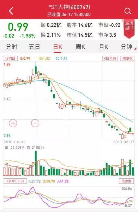 *ST大控于6月10日首次跌破面值,收于0.98元/股,随后两个交易日股价均出现盘中触及1元,但是收盘价格不足以解除风险。