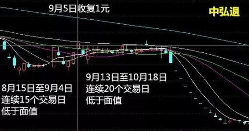 以中弘退(彼时还叫中弘股份)为例,自2018年6月20日起,中弘退股价多次出现盘中跌破面值,尾盘再站上1元的情形。