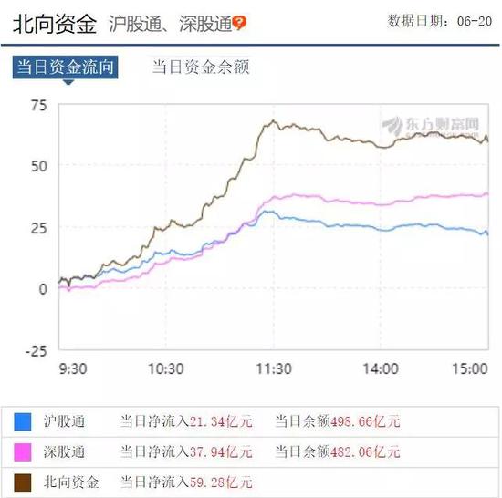 北向资金6月20日净流入情况
