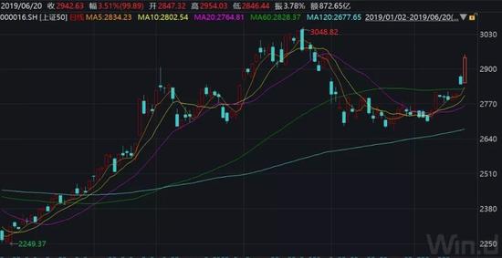作为权重代表,上证50指数今日大涨3.51%,成功回补5月6号的跳空缺口。