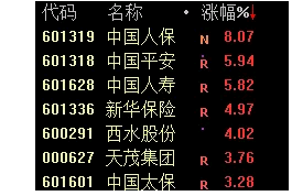 保险板块涨幅榜