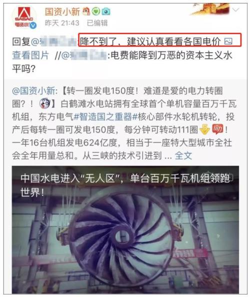 在@国资小新“将不到其他国家水平”调侃之外,国家电网、南方电网的微博也纷纷活跃起来,晒出各种电价数据。