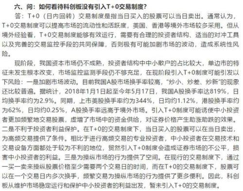因此,科创板从维护市场稳定运行和保护中小投资者的利益出发,暂未引入T+0的交易制度。