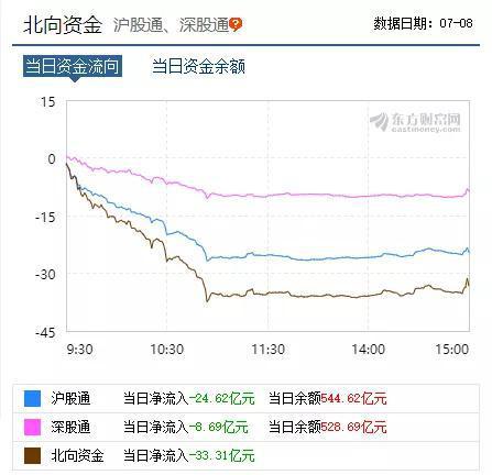 作为外资风向标的北上资金,今日再度大举净流出33.31亿元,其中沪股通净流出24.62亿元,深股通净流出8.69亿元。