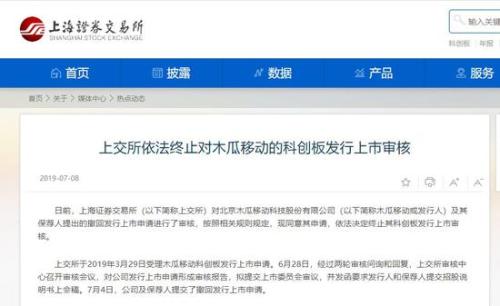 具体来看,上交所对北京木瓜移动科技股份有限公司(以下简称木瓜移动或发行人)及其保荐人提出的撤回发行上市申请进行了审核,按照相关规则规定,现同意其申请,依法决定终止其科创板发行上市审核。