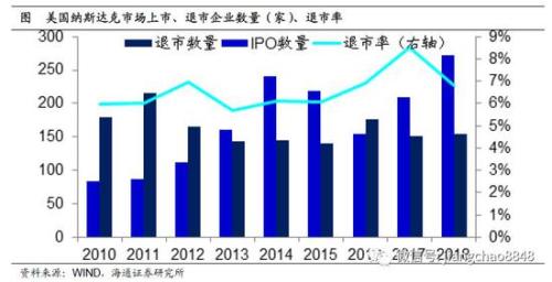 Wind数据显示,从2010年到2018年,美国纳斯达克市场的上市股票数量保持在2500家左右,而平均每年退市160家,退市率超过6%。