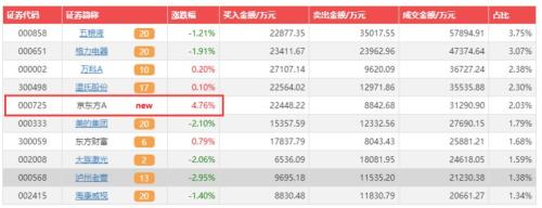 7月16日,Wind数据统计显示,深股通十大活跃个股成交额32.89亿元,占总成交额的21.30%。其中京东方A近一个月首次上榜,成交3.1亿元,其中净买入2.2亿元。