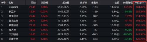 据wind数据统计,自今年年初,受益于猪肉价格上涨,生猪产业链概念股表现突出,正邦科技、新五丰、傲农生物(603363,诊股)、新希望(000876,诊股)、牧原股份等8家家公司股价均已翻倍,其中正邦科技和新五丰的股价分别上涨305%和283%。