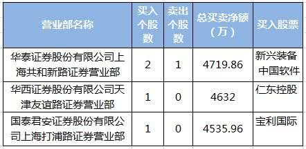 9月7日,净买入额位居前三的营业部为华泰证券上海共和新路营业部、华西证券天津友谊路营业部、国泰君安证券上海打浦路营业部,涉及新兴装备等热门股,净买入分别为4719万元、4632万元、4535万元。