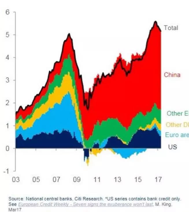 事实上,只要经济和金融市场略有波动,央行们就会不断增加刺激。例如2015年-2017年,全球金融市场波动,全球央行们的资产负债表规模相应扩大。