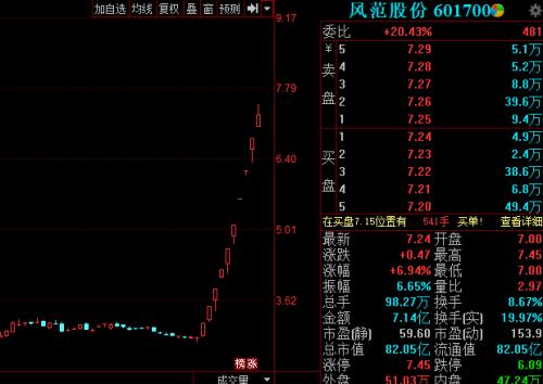 十连板!风范股份(行情601700,诊股)的妖股行情还在继续!今日,风范股份再度成为关注焦点。早盘,风范股份便早早封于涨停,随后涨停板被打开,但临近收盘,股