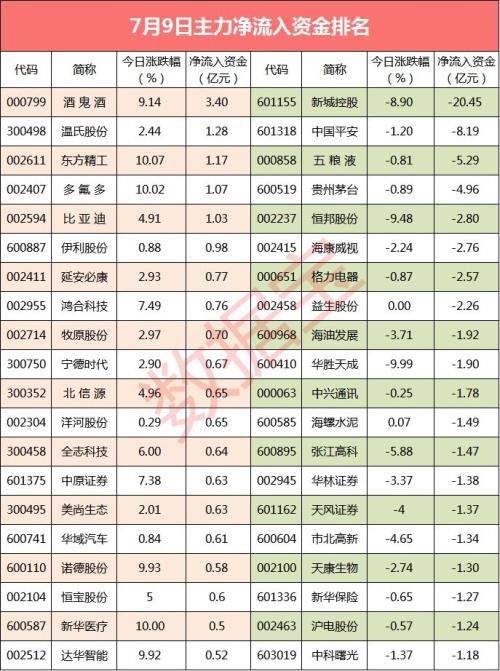 沪指7月9日下跌0.18%,主力资金全天净流出162.71亿元,已连续6个交易日资金呈净流出状态。其中,中小板主力资金净流出28.45亿元,创业板主力资金净