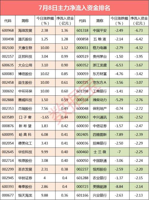沪指7月8日下跌2.58%,主力资金全天净流出456.19亿元,已连续5个交易日资金呈净流出状态。其中,中小板主力资金净流出91.01亿元,创业板主力资金净