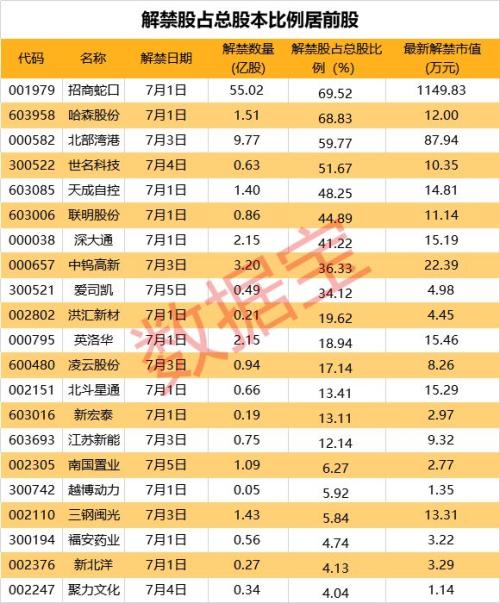 6月以来,沪指在3000点附近窄幅振荡,全月上涨2.77%,个股表现较为平淡。下周,是7月的第一周,沪深两市将迎来超过1400亿元的解禁潮,面临巨额解禁的个