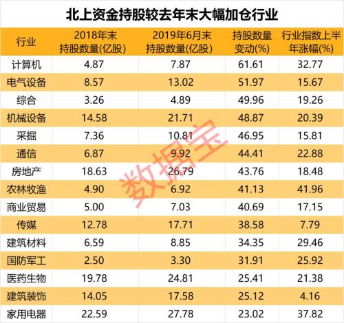 2019年上半年已收官,A股市场整体表现可圈可点。沪指上半年上涨19.45%,在全球重要指数里排名靠前。市场的大涨自然是离不开资金的支撑,流入最为明显的非北