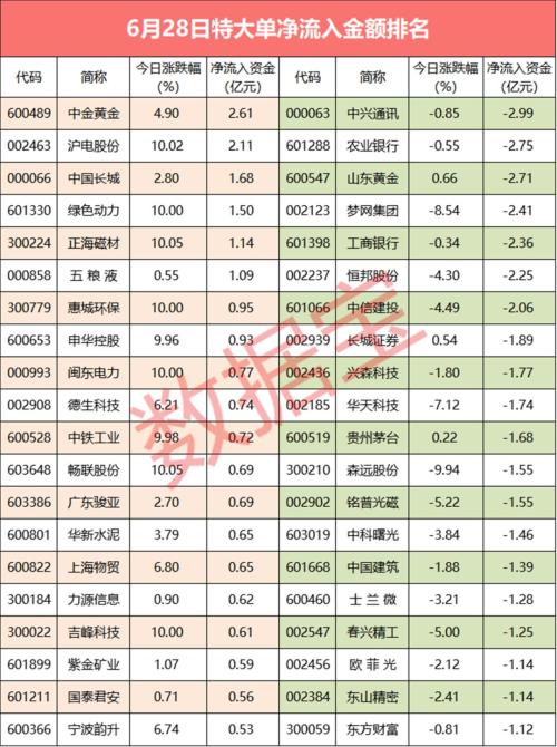 两市全天特大单净流出127.06亿元,其中20股特大单净流入超5000万元,中金黄金(行情600489,诊股)特大单净流入2.61亿元,特大单净流入资金居首