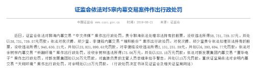 6月21日,证监会新闻发言人常德鹏在证监会例行新闻发布会上表示,近日,证监会依法对5宗内幕交易案件作出行政处罚。其中对郭海内幕交易“中文传媒(行情60037