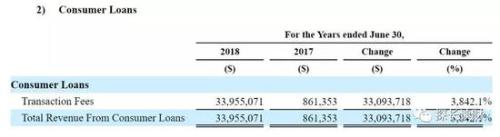 在截止2017年和2018年6月30的两个财年里,合众e贷净利润分别为-84万美元和427万美元(约合2900万元人民币)。