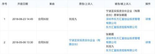 基金君发现,在此事件之前,2018年5月和8月,宁波茁实与东方汇富控股、东方汇富创投及刘龙九之间便两次因合同纠纷开庭。