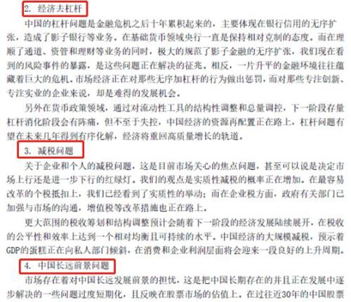 在上述季报里,经济去杠杆、减税问题等市场关注问题,刘明均给予针对性回应,应对投资者关切。