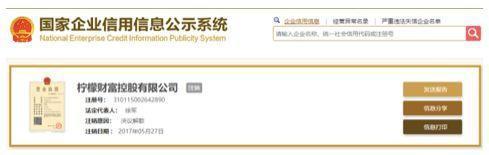 国家企业信用信息公示系统显示,柠檬财富运营主体柠檬财富控股有限公司目前已注销,注销原因为决议解散。目前已无法查询到柠檬财富官网。