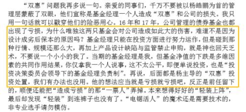 但在信件原文中,江小震却认为,这次巨额亏损是市场行情、基金规模、产品设计缺陷等多重因素作用的结果,特别是这两只基金设计成“劣后保本”,才是对公司造成巨大伤害的主要原因,“锅”不应该由自己一个人背。