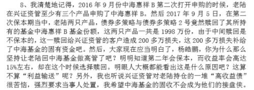江小震认为,“老陆”与杨皓鹏存在“利益输送”问题,这200多万的损失是用于补给中海基金的固有资金,而为了“报答老陆”,杨皓鹏把“老陆”安插进了中海基金任职高管。