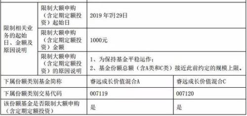 睿远基金已经发布公告“谢客”。公告称,7月29日起,睿远成长价值混合将对大额申购(含定期定额投资)业务进行限制,单日单个基金账户的累计申购(含定期定额投资)该基金A类或C类基金份额总金额均应不高于1000元。