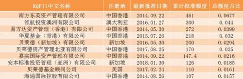 据了解,RQFII为人民币合格境外机构投资者的简称,主要方便境外人民币投资境内市场,由证监会、央行、外管局在2011年开始给予基金公司一定的境外人民币投资额度。最早仅为内地的香港基金、券商子公司获得,也成为不少内地香港子公司在香港发展初期的一大利好。但随着我国加大对外开放力度,尤其是为了争取MSCI纳A,方便海外大型资产公司投资公司投资A股,不少海外公司也开始获得RQFII额度,且规模不少。
