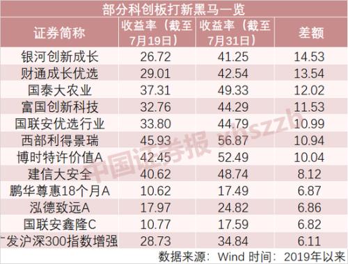 最引人注目的或许不是股基混基收益冠军双双超过62%,而是一些中小规模基金依靠科创板打新成为黑马,甚至在两周内净值飙升14个百分点,排名跃升明显。