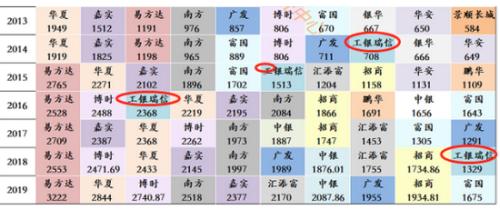 据银河证券数据,2019年中,工银瑞信最新的非货币短债接近规模1417亿元行业排名在11位。而工银瑞信的“高光时刻”在2016年,当时行业排名冲到了前三名。随后在2017年被挤出前十名,到2018年末排名第十,而今年上半年又被挤出前十。