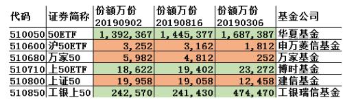 目前市场共有六只50ETF,近半年华夏50ETF规模从168.7亿份降至139亿份,缩水30亿份。博时基金旗下50ETF规模缩水。其余建信基金、万家基金、申万菱信基金旗下50ETF规模有增长。