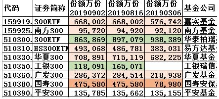 目前市场上有9只300ETF,其中近期仅有华泰柏瑞和工银瑞信旗下300ETF份额缩水,其余嘉实、南方、易方达、华夏、广发、国寿、平安等产品份额均有增长。